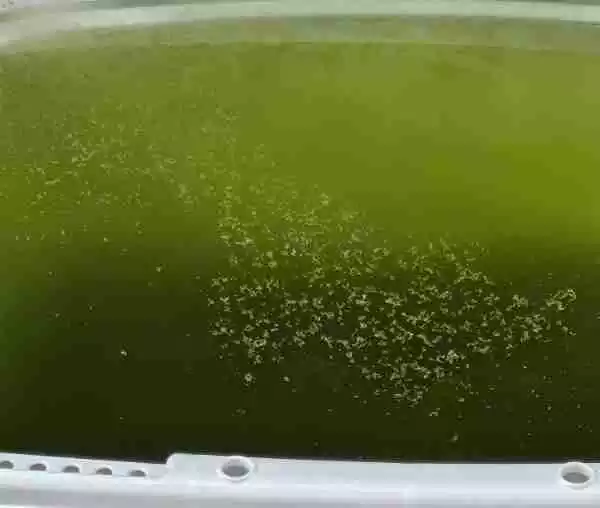 透明だった飼育水の水質は、数日後には薄く緑色になってきました。