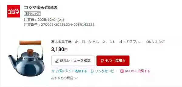購入をしたのはネットですが、地元でも展開している「コジマ」の楽天市場店です。