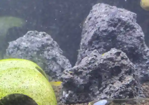水槽内に飾りとして、石(溶岩石)を入れています。