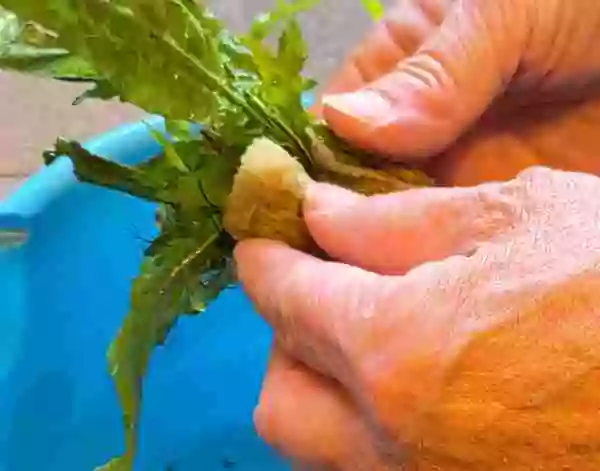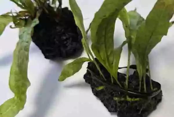 予告していたことですが、ミクロソリウム・プテロプスをPODから外し溶岩石に取り付ける作業をしました。