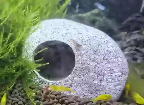 このような隠れ家オブジェを使用するのも良いと思うのですが、シュリンプたちの数がとても多いので使用していません(オブジェの中に、入る匹数が多くないこともあり)。