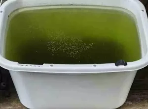 立上げた屋外メダカ水槽。グリーンウォーター化